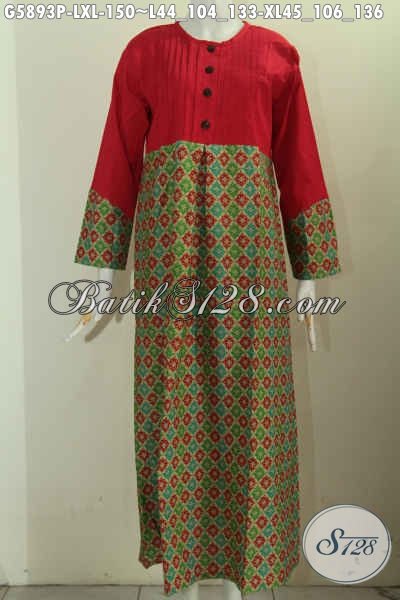 Baju Batik Gamis Perpaduan Motif Dan Kain Polos, Busana Muslim Wanita Masa Kini Penampilan Lebih Anggun Dan Cantik [G5893P-L , XL]