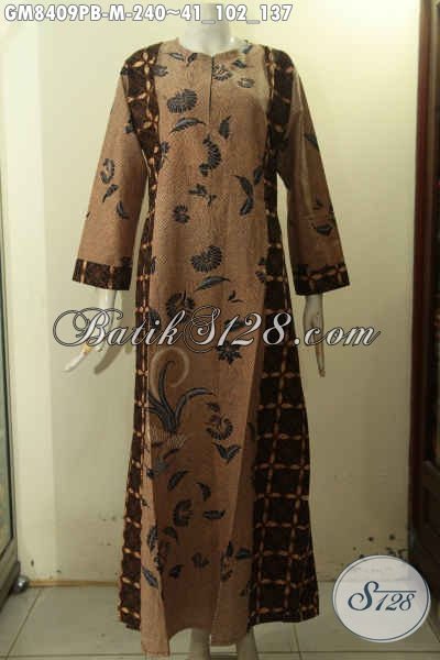 Baju Batik Gamis Resleting Depan, Pakaian Batik Jawa Tengah Halus Terbaru Desain Mewah Dengan Variasi 2 Warna Untuk Penampilan Lebih Mempesona Dan Berkelas Hanya 240K [GM8409PB-M]