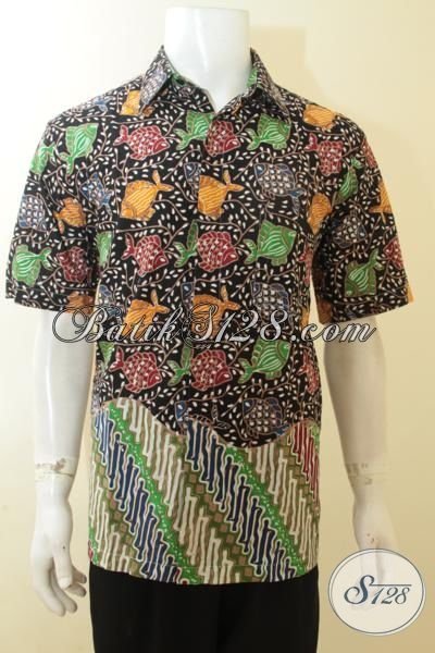 Baju Batik Halus Khas Anak Muda, Kemeja Batik Motif Ikan Dasar Hitam Keren Dan Elegan,Pakaian Batik Cap Tulis Kwalitas Premium [LD3918CT-L]