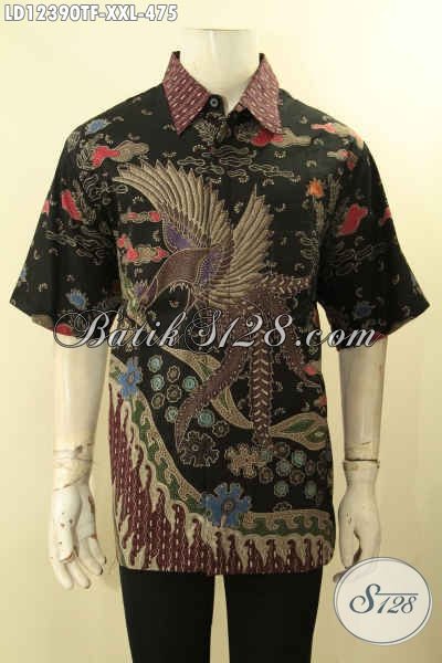 Baju Batik Halus Lengan Pendek Istimewa, Kemeja Batik Premium Pria Gemuk Pakai Furing Motif Terkini Proses Tulis Lasem, Pas Untuk Acara Resmi [LD12390TF-XXL]