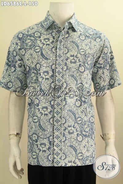 Baju Batik Halus Lengan Pendek, Kemeja Batik Modern Motif Unik, Hem Batik Solo Proses Cap Model Lengan Pendek Tampil Lebih Trendy [LD6586C-L]