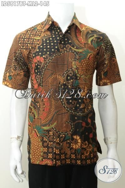 Baju Batik Halus Lengan Pendek Motif Mewah Berkelas, Pakaian Batik Solo Proses Kombinasi Tulis Buat Kerja Kantoran [LD5817BT-M , L]