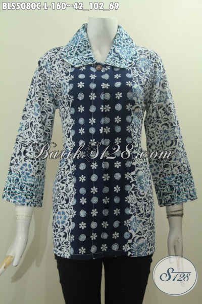 Baju Batik Halus Model Mewah, Blus Batik Formal Kerah Benang Besar Yang Elegan Untuk Acara Resmi Serta Modis Buat Seragam Kerja, Bahan Adem Proses Cap Harga 160K [BLS5080C-L]