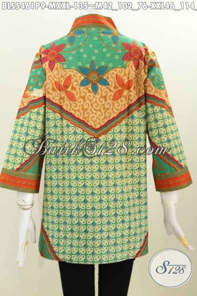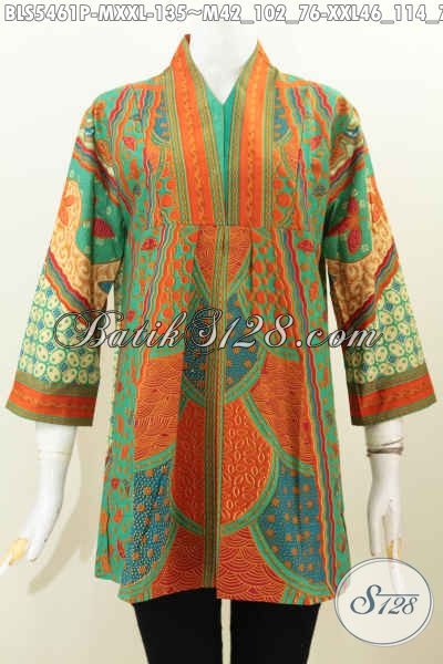 Baju Batik Halus Proses Printing, Pakaian Batik Istimewa Buatan Solo, Busana Batik Tanpa Kerah Motif Klasi Di Jual Onlline 135K [BLS5461P-M , XXL]