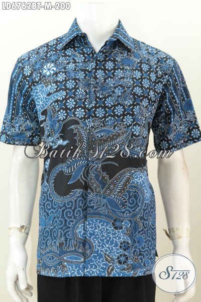 Baju Batik Halus Warna Biru, Kemeja Batik Elegan Untuk Acara Formal Dan Seragam Kerja Kantoran Proses Kombinasi Tulis Model Lengan Pendek [LD6762BT-M]