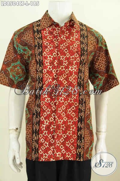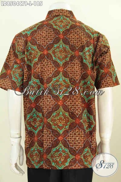 Baju Batik Hem Elegan Lengan Pendek Ukuran L, Kemeja Batik Solo Halus Proses Cap Tulis, Spesial Untuk Pria Karir Tampil Lebih Mempesona [LD8504CT-L]
