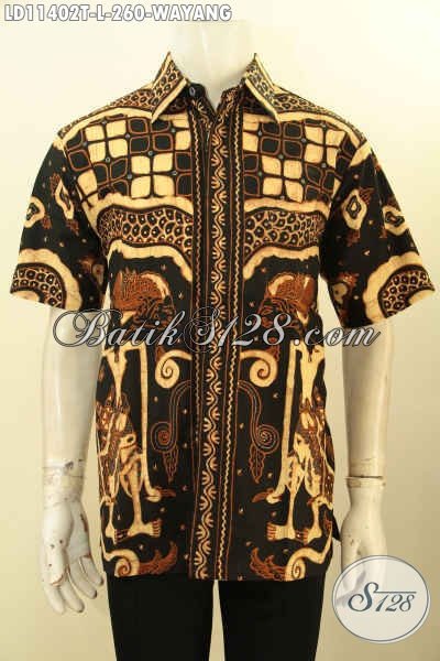 Baju Batik Hem Elegan Untuk Kondangan Model Lengan Pendek, Busana Batik Tulis Motif Wayang Warna Klasik Nan Berkelas, Cocok Juga Buat Ngantor [LD11402T-L]