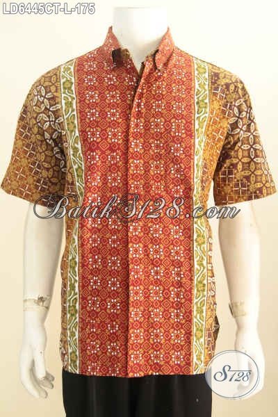 Baju Batik Hem Lengan Pendek Modis, Busana Batik Istimewa Berbahan Adem Proses Cap Tulis, Keren Untuk Hangout Dan Modis Baut Kerja [LD6445CT-L]