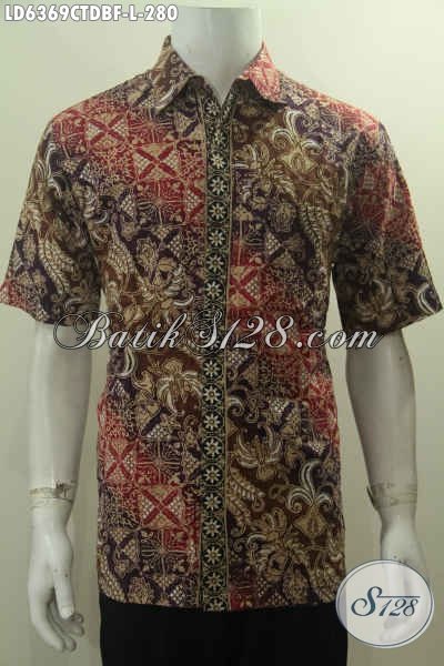 Baju Batik Hem Lengan Pendek Pakai Furing Model Terkini Yang Bikin Penampilan Lebih Gaya, Berbahan Kain Doby Halus Motif Proses Cap Tulis [LD6369CTDBF-L]