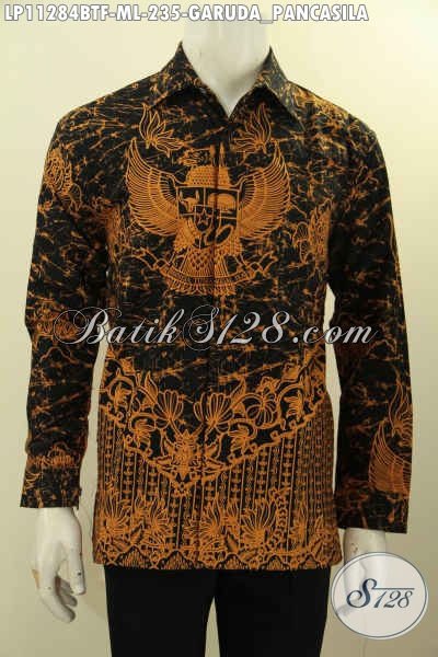 Baju Batik Hem Motif Garuda Pancasila, Busana Batik Lengan Panjang Istimewa Full Furing Proses Printing Cabut, Tampil Gagah Berwibawa [L11284BTF-M]