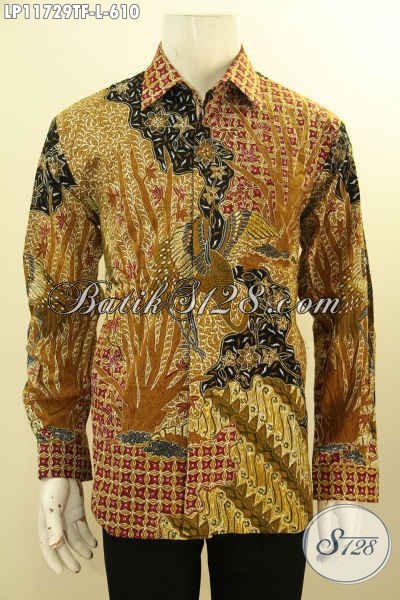 Baju Batik Hem Pria Lengan Panjang Full Furing Bahan Halus Motif Mewah Tulis Aslli, Pakaian Batik Premium Buatan Solo Spesial Untuk Eksekutif Dan Pria Sukses [LP11729TF-L]
