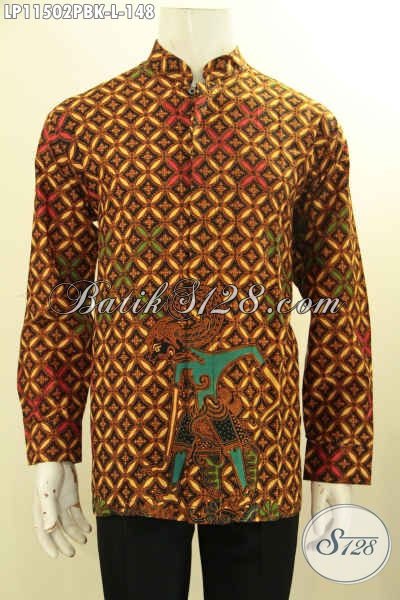 Baju Batik Hem Pria Lengan Panjang Halus Motif Wayang, Busana Batik Lelaki Untuk Tampil Gagah Berwibawa Proses Printing Cabut Model Koko Kerah Shanghai [LP11502PBK-L]
