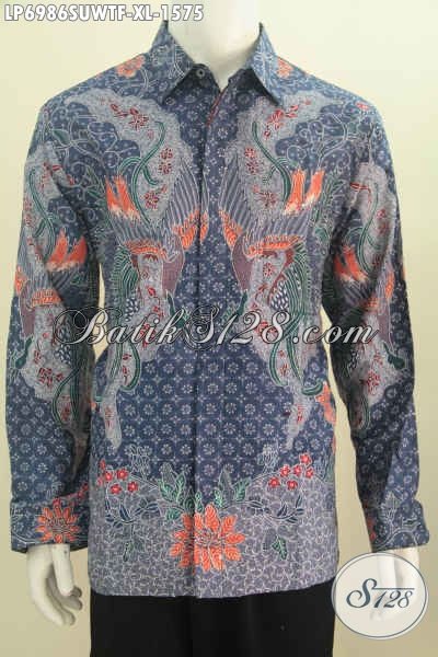 Baju Batik Hem Size XL Untuk Pria Dewasa, Berbahan Sutra Twist Motif Proses Tulis Tangan Model Lengan Panjang Full Furing Tampil Mewah Bak Pejabat [LP6986SUWTF-XL]