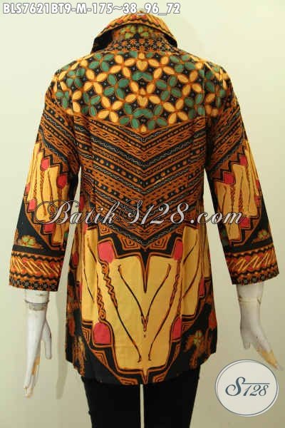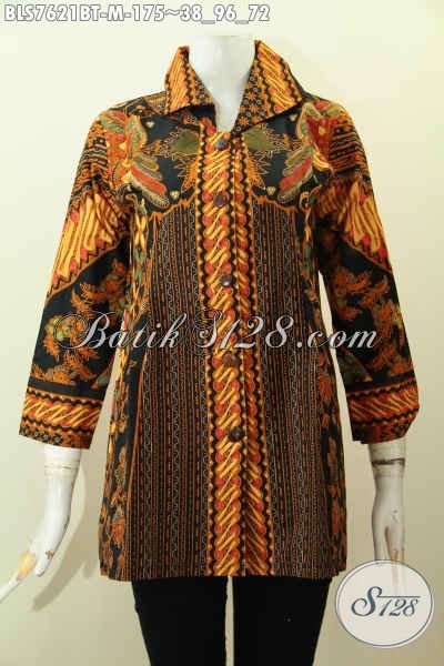 Baju Batik Hem Wanita, Blus Batik Dengan Kerah, Pakaian Batik Motif Klasik Elegan Untuk Kerja Kantoran Wanita Muda [BLS7621BT-M]