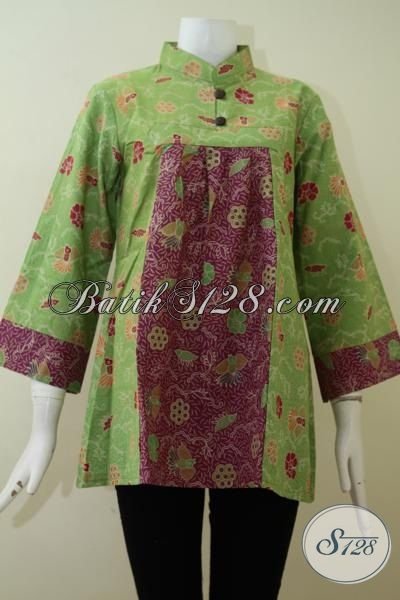 Baju Batik Hijau Muda Berpadu Warna Merah Dengan Motif Trend Terkini, Sangat Cocok Untuk Busana Pesta Serta Elegan Untuk Ke Kantor [BLS2193P-L]
