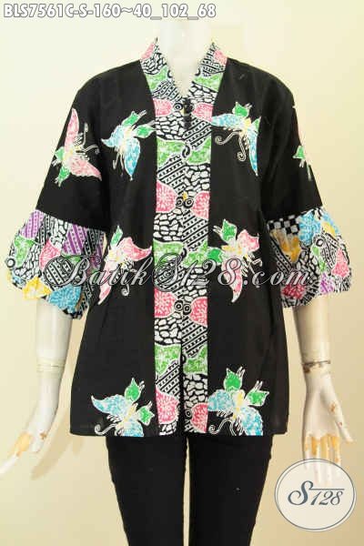 Baju Batik Hitam Dengan Aksen Motif Nan Modis, Batik Blus Kenzi Kancing Banyak Proses Cap Penampilan Lebih Modis [BLS7561C-S]
