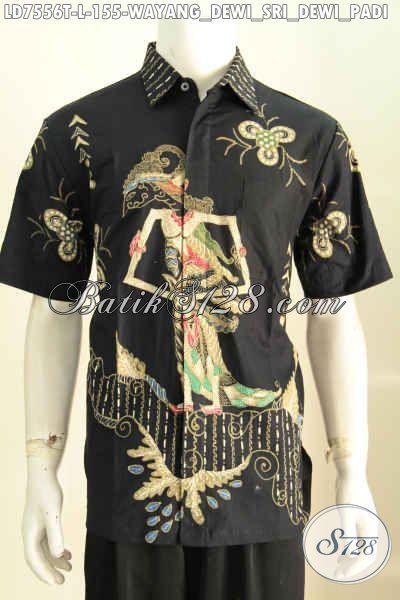 Baju Batik Hitam Motif Dewi Sri, Busana Batik Wayang Modis Bahan Adem Proses Tulis Untuk Kerja Dan Acara Formal [LD7556T-L]