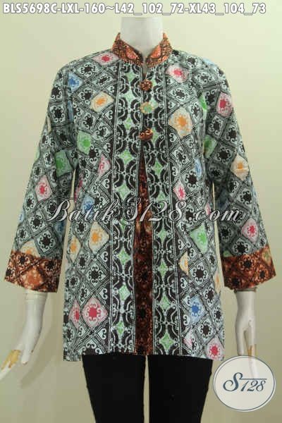Baju Batik Istimewa Buat Wanita Karir Dewasa, Busana Batik Masa Kini Untuk Tampil Elegan Dan Modis Model Pias Depan Kancing Besar Proses Cap [BLS5698C-L , XL]
