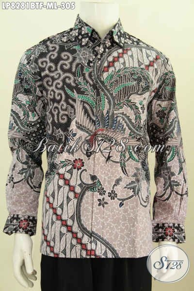 Baju Batik Istimewa Motif Klasik Nan Mewah, Busana Hem Batik Terkini Buatan Solo Kwalitas Bagus Kombinasi Tulis Hanya 300 Ribuan [LP8281BTF-M , L]