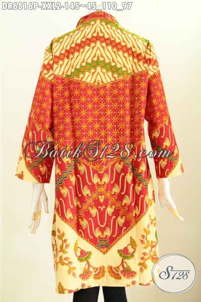 Baju Batik Istimewa Proses Printing, Baju Dress Batik Kerah Langsung Khusus Wanita Gemuk Motif Berkelas Proses Printing Tampil Makin Menawan [DR6816P-XXL]