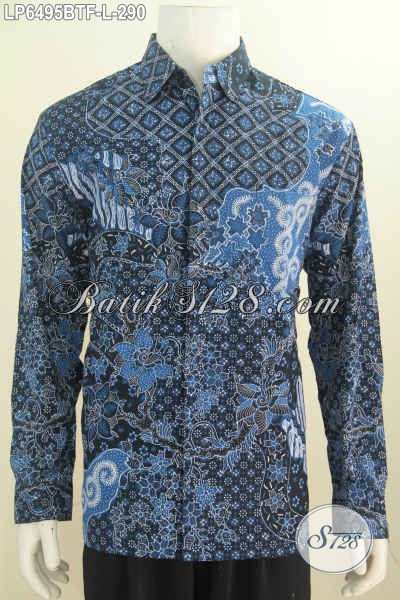 Baju Batik Istimewa Warna Biru, Produk Busana Batik Lengan Panjang Full Furing Untuk Lelaki Agar Bisa Tampil Gagah Berwibawa, Berbahan Halus Batik Kombinasi Tulis harga 290K [LP6495BTF-L]