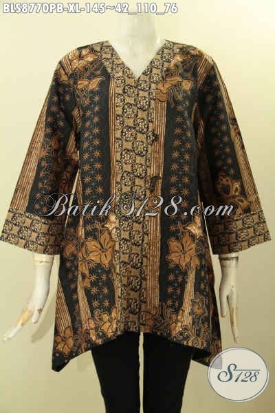 Baju Batik Kantor Wanita Murah, Blouse Batik Model Kutubaru Lengan 7/8 Motif Bagus Dengan Sentuhan Klasik Bikin Penampilan Nan Elegan [BLS8770PB-XL]
