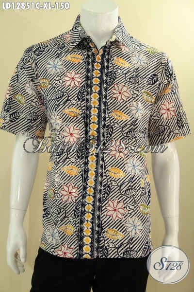 Baju Batik Kantoran Pria Lengan Pendek Khas Jawa Tengah, Kemeja Batik Modern Motif Terkini Jenis Cap Untuk Penampilan Terlihat Fresh Dan Gagah [LD12851C-XL]