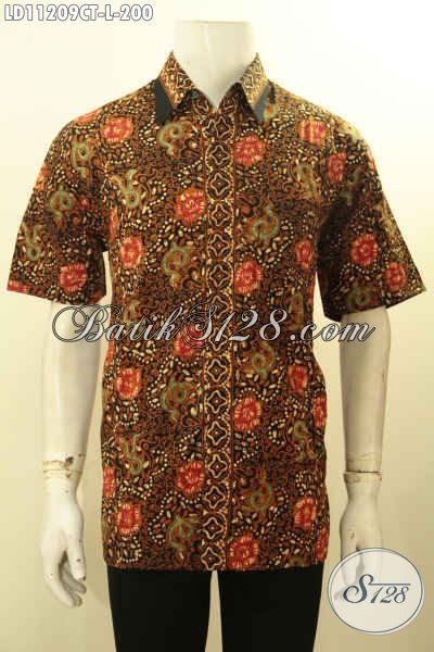 Baju Batik Kantoran Pria Model Lengan Pendek Motif Bagus Dan Berkelas, Kemeja Batik Cap Tulis Bahan Tampil Elegan Dan Gagah [LD11209CT-L]