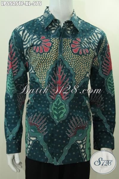 Baju Batik Kemeja Lengan Panjang Premium Warna Hijau, Busana Batik Lelaki Dewasa Karir Aktif Dengan Desain Motif Mewah Proses Tulis Daleman Pake Furing Lebih Elegan Dan Premium [LP5525TF-XL]