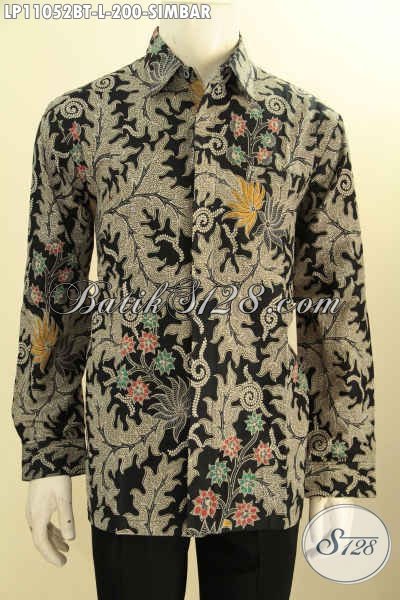 Baju Batik Kemeja Solo Lengan Panjang Motif Simbar, Hem Batik Halus Kwalitas Premium Non Furing Proses Kombinasi Tulis, Pria Tampil Gagah Dan Mempesona [LP11052BT-L]