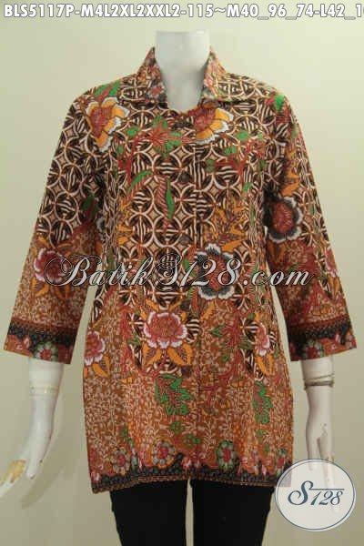 Baju Batik Kerah Kotak Proses Printing, Aneka Busana Blus Batik Wanita Muda Dan Dewasa Untuk Yang Bertubuh Langsing Maupun Gemuk, Berbahan Halus Desain Mewah Harga Murah [BLS5117P-M , L , XL , XXL]