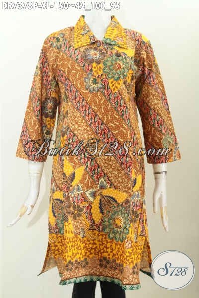 Baju Batik Kerah Lancip, Dress Batik Wanita Dewasa Kancing Miring Motif Klasik Printing 150K [DR7378P-XL]