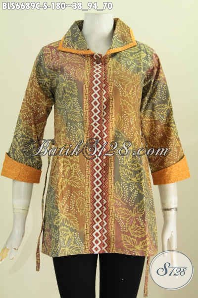 Baju Batik Kerah Plesir Motif Mewah Berpadu Dengan Kain Embos, Blus Batik Wanita Masa Kini Untuk Tampil Lebih Cantik Istimewa [BLS6689C-S]