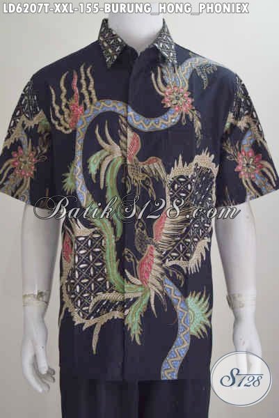 Baju Batik Keren Buatan Solo, Produk Kemeja Batik Modis Lengan Pendek Motif Burung Hong Atau Phoenix Proses Tulis Ukuran 3L Untuk Pria Gemuk [LD6207T-XXL]