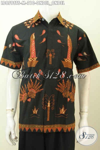 Baju Batik Keren Cowok Motif Ondel-Ondel Betawi, Hem Batik Tulis Soga Istimewa Model Lengan Pendek Desaain, Pria Tampil Modis [LD8598TS-M]