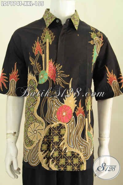 Baju Batik Keren Lengan Pendek, Pakaian Batik Jumbo Untuk Kerja Kantoran Bahan Halus Proses Tulis Harga 155K [LD7974T-XXL]
