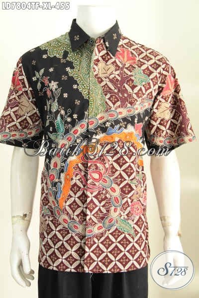 Baju Batik Keren Mewah Spesial Buat Pria Dewasa Tampil Gagah Dan Gaya, Bahan Adem Model Lengan Pendek Full Furing Motif Tulis Asli [LD7804TF-XL]