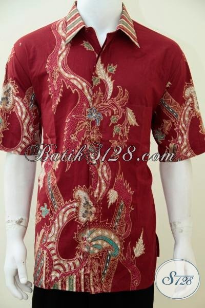 Baju Batik Keren Untuk Pria Gemuk Terlihat Keren Dan Modis, Kemeja Batik Tulis Istimewa Ukuran Jumbo Warna Merah [LD2464T-XXL]