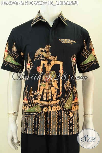 Baju Batik Keren Warna Hitam Motif Wayang Abimanyu, Busana Batik Tulis Solo Lengan Pendek Tampil Lebih Gagah [LD9409T-M]