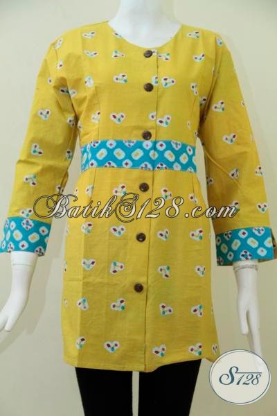 Baju Batik Keren Warna Kuning Dengan Motif Unik Cocok Untuk Kerja Dan Hangout, Pakaian Batik Model Blus Terkini Harga Terjangkau [BLS1502-L]
