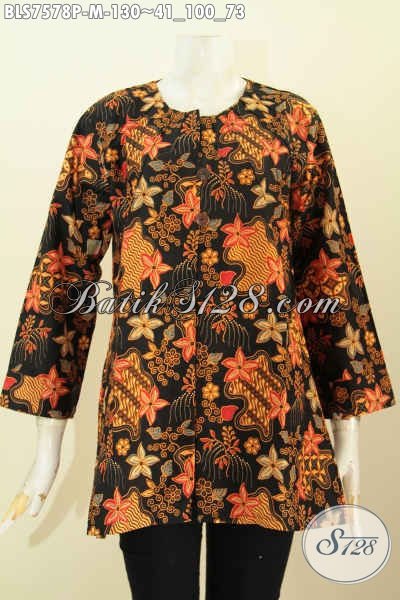 Baju Batik Kerja Blus Tanpa Krah, Batik Modern Dengan Warna Klasik Motif Terkini Proses Printing, Di Jual Online 130K [BLS7578P-M]