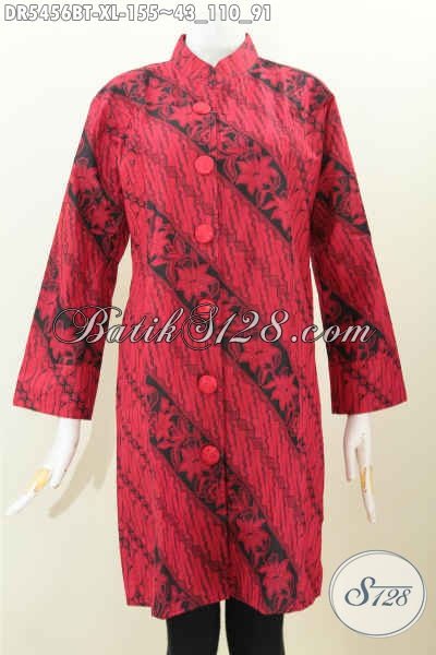 Baju Batik Kerja Elegan Model Kerah Shanghai Kancing Besar, Hadir Dengan Bahan Halus Warna Monokrom Merah Hitam Proses Kombinasi Tulis Harga 155K [DR5456BT-XL]