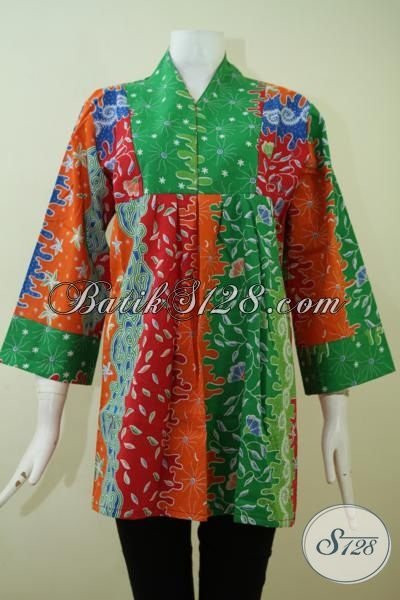 Baju Batik Kerja Harga Murah Kwalitas Mewah, Busana Blus Batik Solo Warna Trendy Berpadu Dengan Motif Yang Mewah [BLS2397P-XXL]