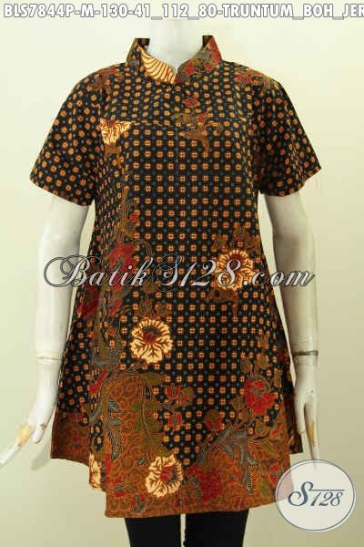 Baju Batik Kerja Kerah Shanghai, Blus Lengan Pendek Batik Klasik Motif Truntum Boh Jeruk Proses Printing, Penampilan Lebih Istimewa [BLS7844P-M]