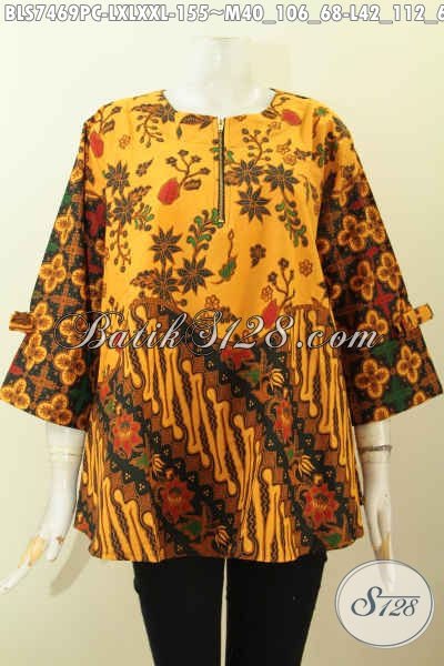 Baju Batik Kerja Model A Simetris, Blus Batik Febi Lengan Berpita Pakai Kancing Resleting Depan, Motif Terkini Proses Printing Hanya 155K [BLS7469PC-L , XL , XXL]