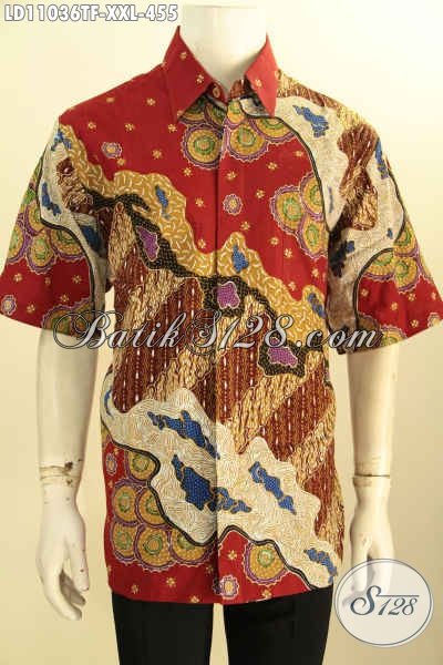 Baju Batik Kerja Modern Pria Gemuk, Busana Batik Istimewa Untuk Tampil Gagah Menawan, Motif Terkini Proses Tulis Model Lengan Pendek Full Furing Hanya 400 Ribuan [LD11036TF-XXL]