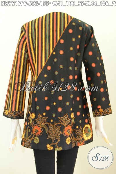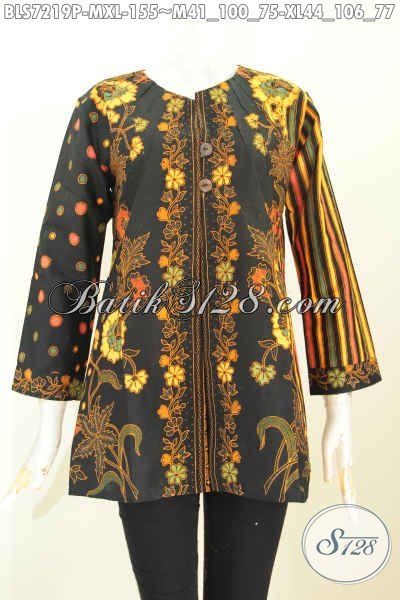 Baju Batik Kerja Motif Kombinasi, Pakaian Batik Klasik Wanita Nan Elegan Tanpa Krah, Cocok Juag Buat Acara Resmi [BLS7219P-M , XL]