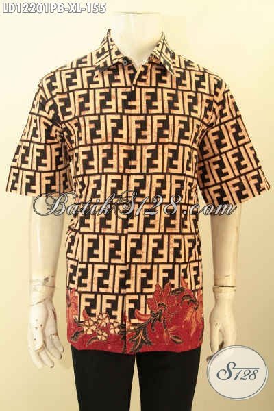 Baju Batik Kerja Pria Dewasa Lengan Pendek, Hem Batik Halus Motif Keren Warna Elegan Proses Printing Cabut, Tampil Gagah Menawan [LD12201PB-XL]
