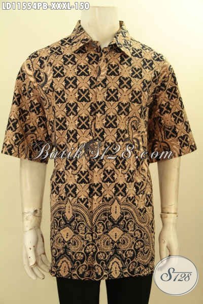 Baju Batik Kerja Pria Gemuk Ukuran XXXL, Hem Batik Jumbo Motif Elegan Trend Masa Kini Proses Printing Cabut Model Lengan Pendek, Di Jual Online 150K [LD11554PB-XXXL]