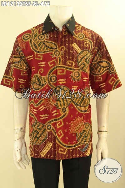 Baju Batik Kerja Pria Lengan Pendek Mewah, Busana Batik Elegan Daleman Full Furing Model Terbaru, Cocok Juga Untuk Acara Resmi [LD12132TSF-XL]